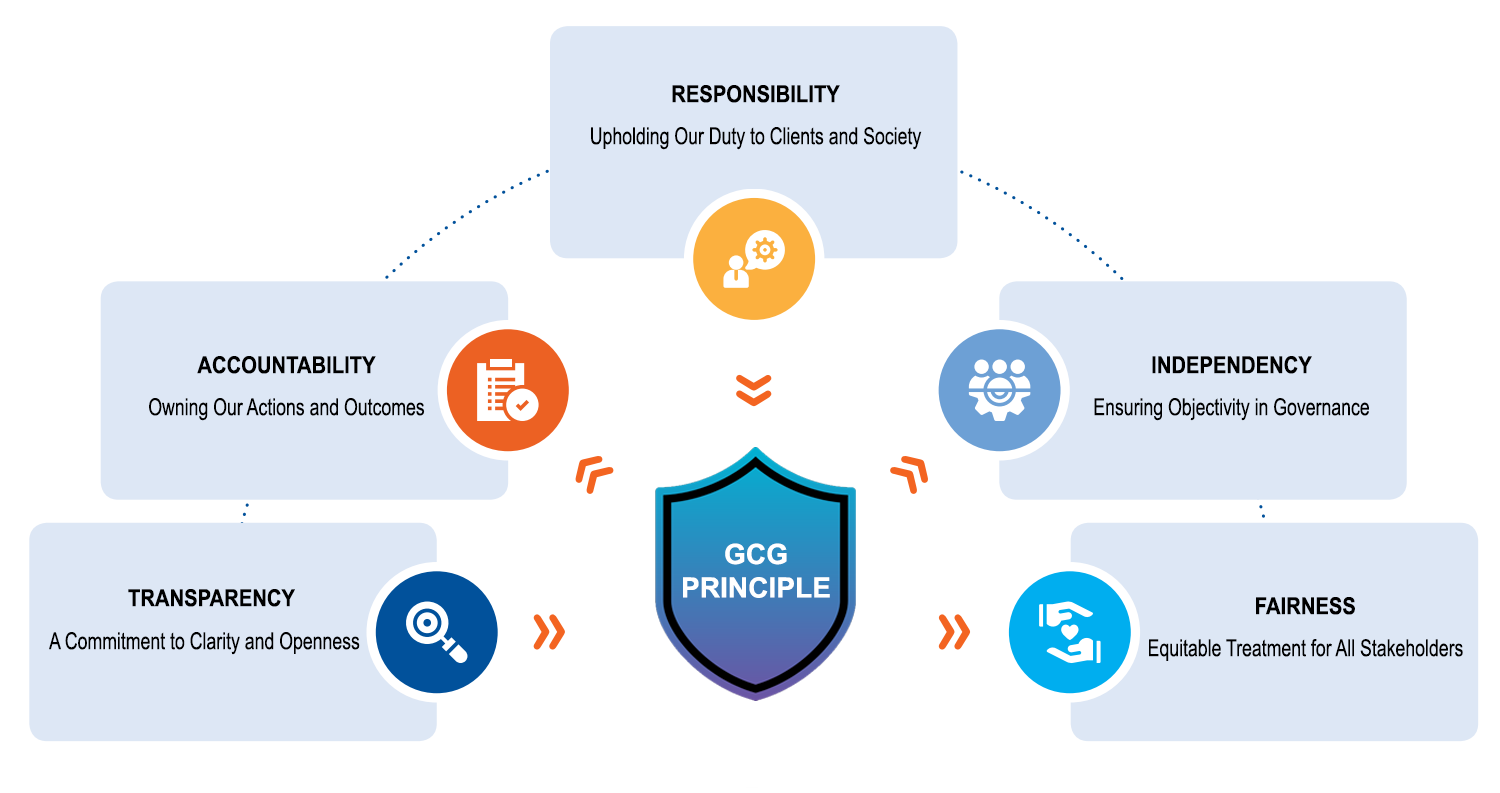 Our commitment to GCG is guided by five fundamental pillars: Transparency, Accountability, Responsibility, Independence, and Fairness.